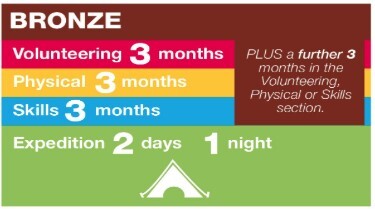 The DofE Bronze Award consists of 4 sections; Physical, Skill, Volunteering and Expedition, with students taking responsibility for identifying opportunities to complete these. The DofE staff team will support participants by highlighting opportunities in the local area and within school.