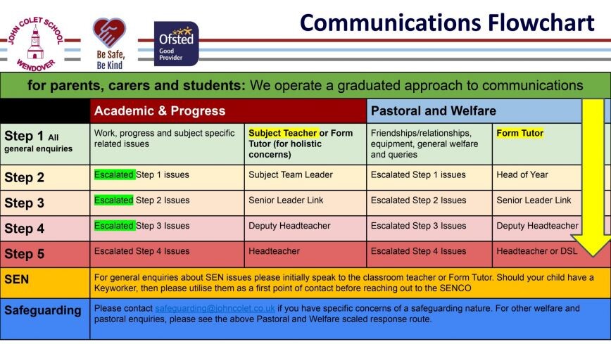John Colet School » Parents » Be Safe, Be Kind (Pastoral and Safeguarding) » Communications Flowchart